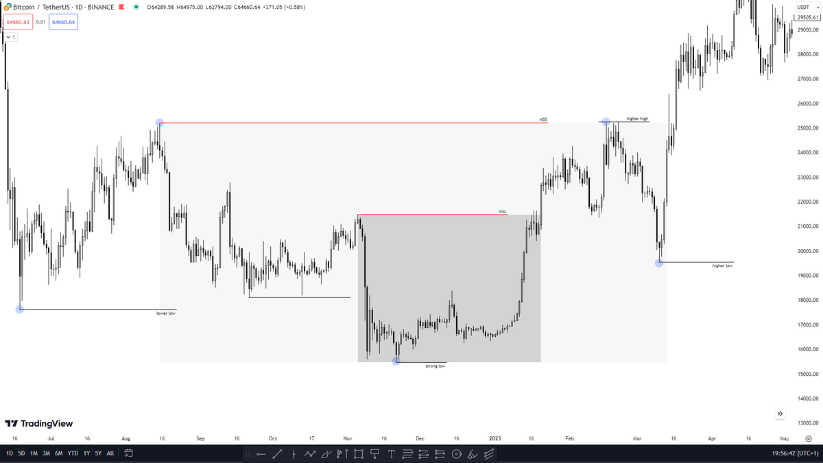 $BTC | Market Structure Assignment. 1. Map the swing highs and lows on weekly timeframe. 2. Map swing highs and lows on daily structure. 3. Identify the shift in structure during the bearmarket lows. 4. Identify the optimal entry after the shift. (you may also use