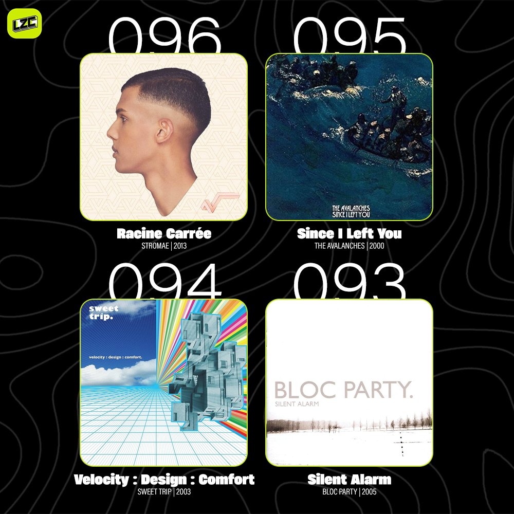 96. Racine Carrée - Stromae (2013) 95. Since I Left You - The Avalanches (2000) 94. Velocity : Design : Comfort - Sweet Trip (2003) 93. Silent Alarm - Bloc Party (2005)