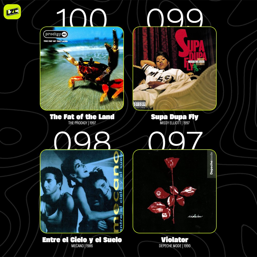 100. The Fat of the Land - The Prodigy (1997) 99. Supa Dupa Fly - Missy Elliott (1997) 98. Entre el Cielo y el Suelo - Mecano (1986) 97. Violator - Depeche Mode (1990)