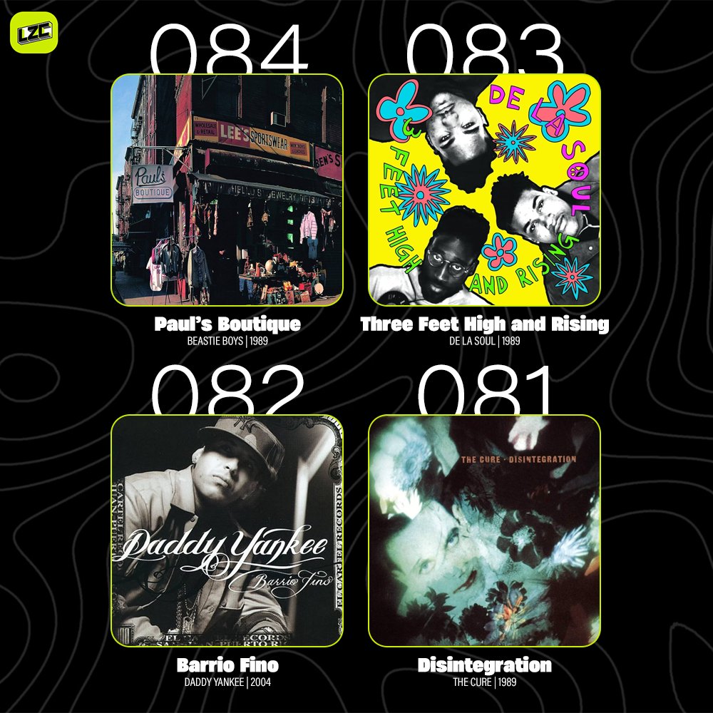 84. Paul's Boutique - Beastie Boys (1989) 83. 3 Feet High and RIsing - De La Soul (1989) 82. Barrio Fino - Daddy Yankee (2004) 81. Disintegration - The Cure (1989)