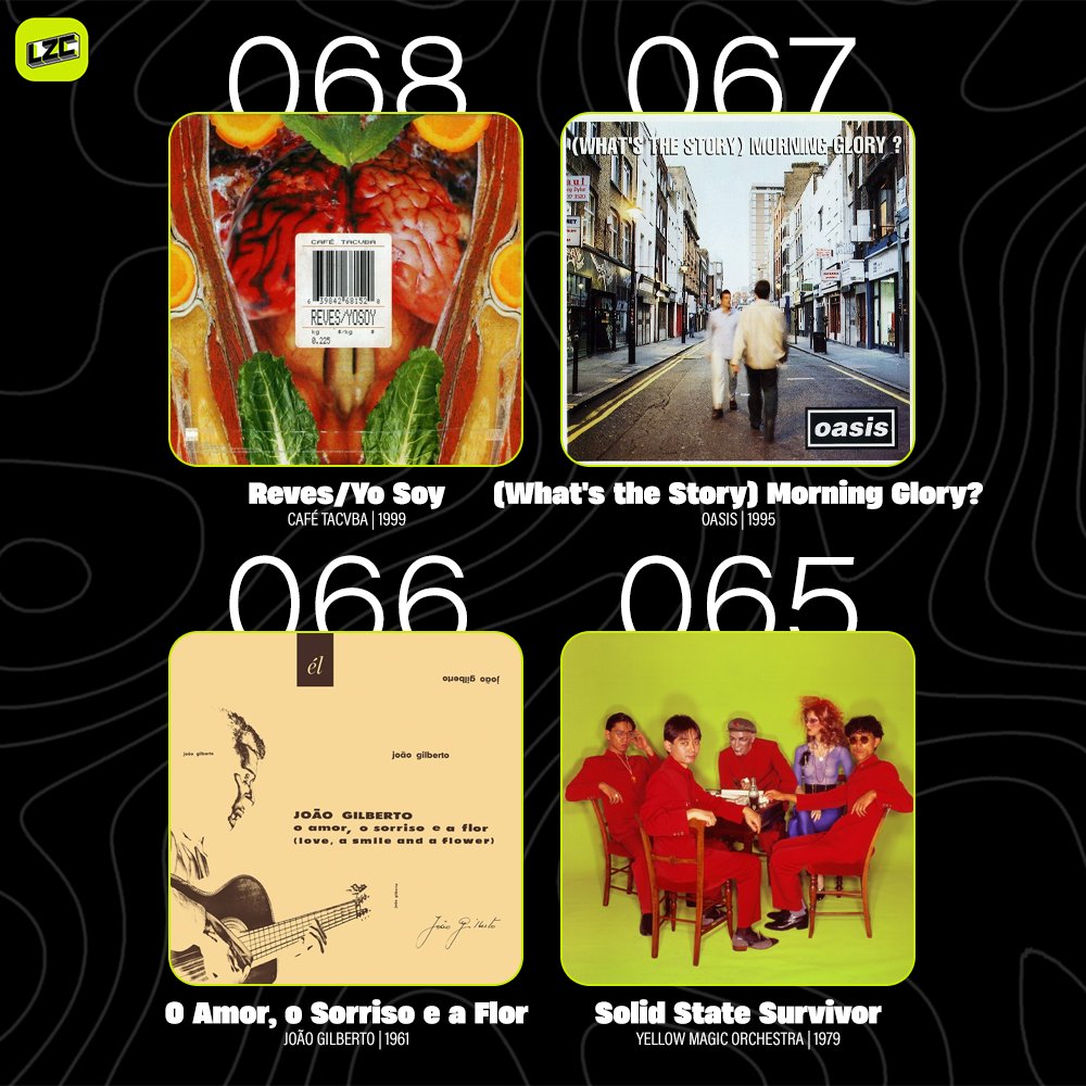 68. Reves/Yo Soy - Café Tacvba (1999) 67. (What's The Story) Morning Glory? (1995) 66. O Amor, o Sorriso e a Flor - João Gilberto (1961) 65. Solid State Survivor - Yellow Magic Orchestra (1979)