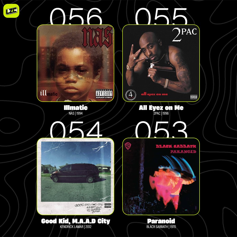 56. Illmatic - Nas (1994) 55. All Eyez on Me - 2Pac (1996) 54. Good Kid, M.A.A.D. City - Kendrick Lamar (2012) 53. Paranoid - Black Sabbath (1970)