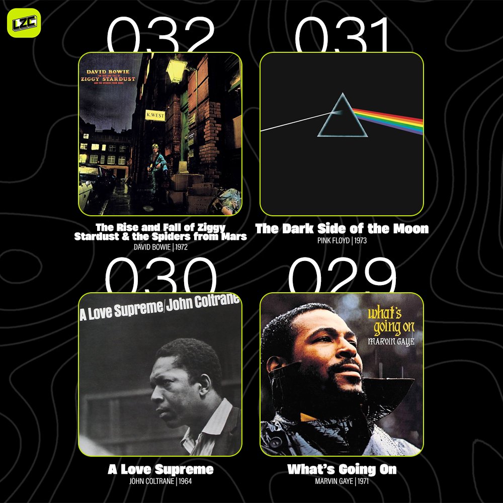 32. The Rise and Fall of Ziggy Stardust and the Spiders of Mars - David Bowie (1972) 31. The Dark Side of the Moon - Pink Floyd (1973) 30. A Love Supreme - John Coltrane (1964) 29. What's Going On - Marvin Gaye (1971)