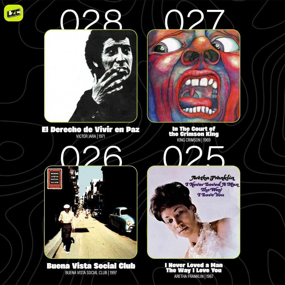 28. El Derecho de Vivir en Paz - Victor Jara (1971) 27. In The Court of the Crimson King - King Crimson (1969) 26. Buena Vista Social Club - Buena Vista Social Club (1997) 25. I Never Loved a Man The Way I Love You - Aretha Franklin (1967)