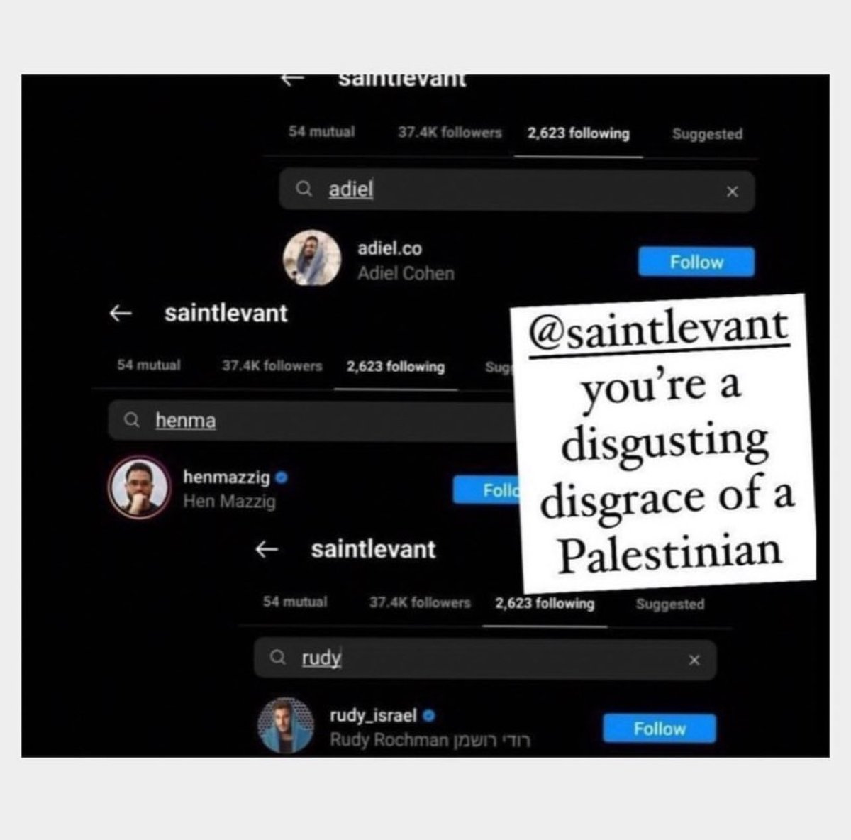 Before he got famous and popped off as a "Palestinian" singer, he was following Adiel Cohen, Rudy Rochman (and *OF soldier who just came back to the US after bombing Gaza) and Hen Mazzig. (You guys could do delve into them more but they're all shayateen.) π΅πΈ