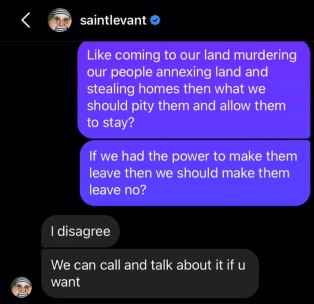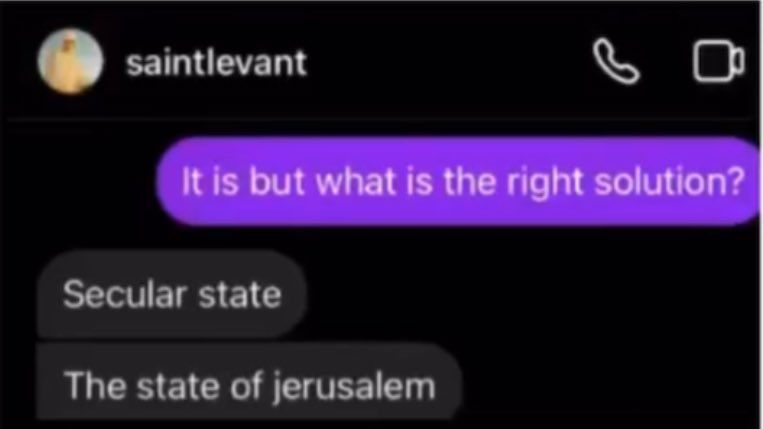 A video of him praising Rudy Rochman, (the terrorist), calling for a two state, humanizing the demon occupation and saying we should basically be all ears on why they want Palestinians dead. "I disagree" One thing that I think is fundamentally wrong is his brain. π΅πΈ