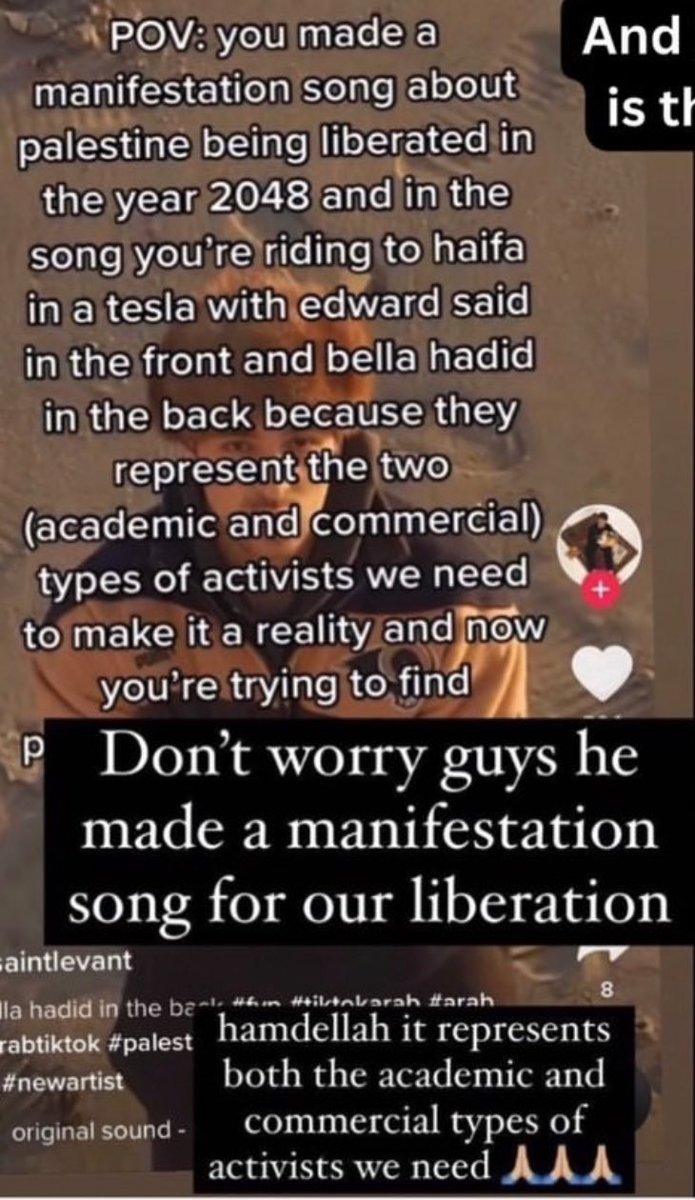 This one will leave your mouth hanging. He's also said in a previous interview about how Palestinians don't have role models besides the Hadids and Edward Said... A "Palestinianβ who has no knowledge about "his" own revolutionary leaders, writers, singers, the list goes on. π΅πΈ