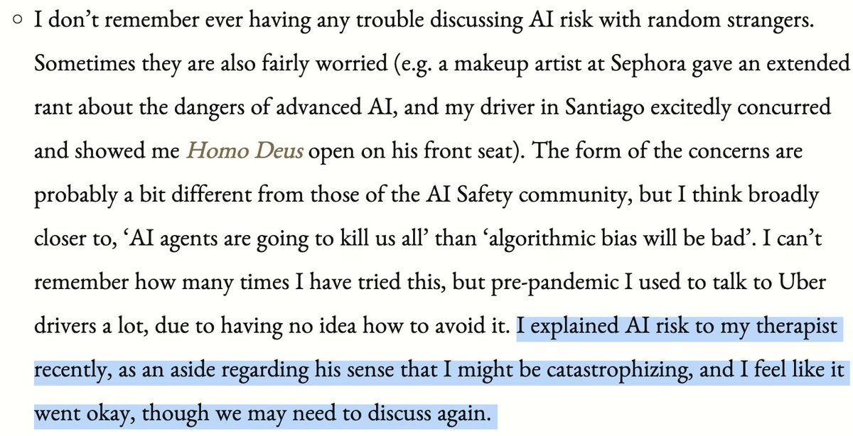 @DrTechlash Fun fact: It's true. If you had any convincing reason for why AGI cannot extinguish us, you'd simply say it, instead of coating your "concern" as concern for mental health. How bad is a few students having mental health problems, 10, if so, the end of our species is 10^30