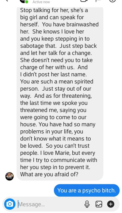 Riley was contacted by Mint Salads mother who pleaded with him to be put into contact with her since she is obviously mentally deficient and unable to care for her own welfare or really even comprehend what is going on. Riley mocks and belittles her mother in these caps.