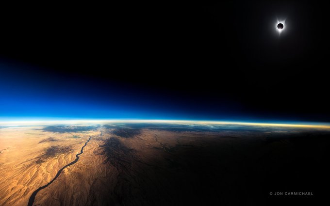 10. Jon Carmichael pasó años tratando de averiguar la mejor manera de conseguir una toma del eclipse solar. En 2017 tomó un vuelo de Portland a San Luis y capturó esta imagen a 39.000 pies de altura. Pasó cientos de horas a lo largo de un año editando más de 1.200 fotos.
