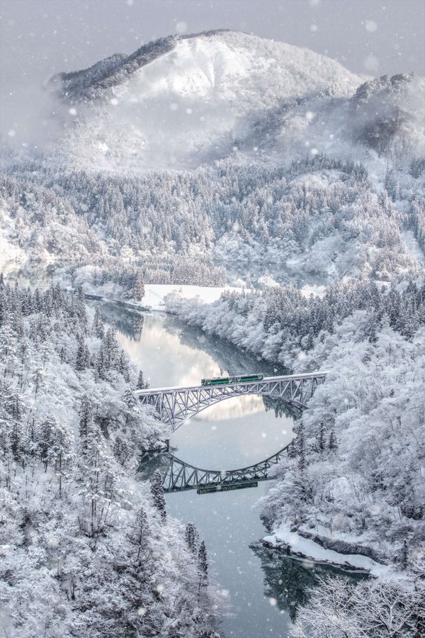 18. La Línea Tadami en invierno, por Kameyama Takeshi. "Cuando decidí centrarme en capturar Fukushima, me levantaba a las 2 de la mañana, conducía durante tres horas por carreteras nevadas y esperaba a temperaturas bajo cero. Este proceso se repetía una y otra vez".