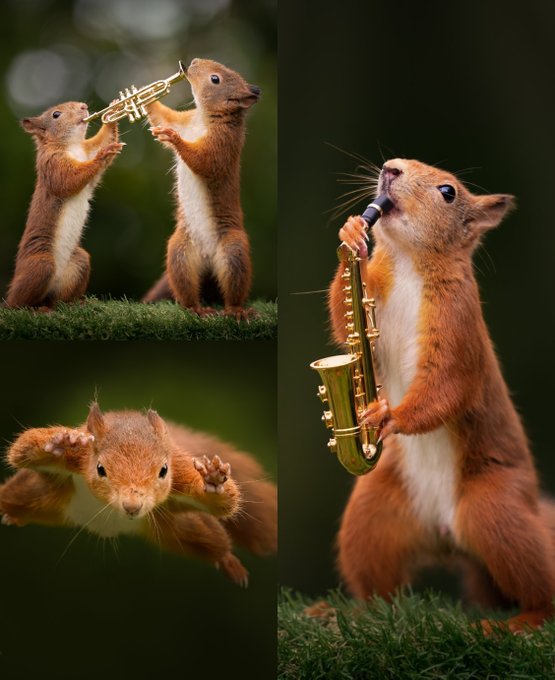 25. El fotógrafo Terry Donnelly pasó un año engatusando ardillas rojas en su jardín para capturar impresionantes fotos de ellas en pleno salto y jugando con diversos instrumentos musicales minúsculos.