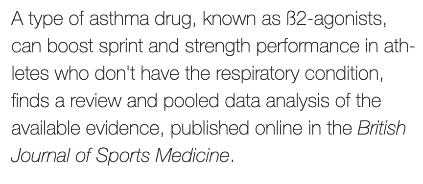 4/x Salbutamol opens the airways to aid breathing. It is banned by WADA for a reason. Several studies have shown that it can assist athletic performance, including in certain circumstances making athletes less prone to exhaustion in endurance events.