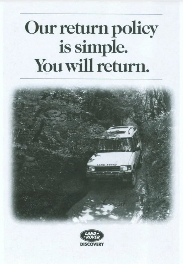2. Land Rover Principle: The U Turn Step 1 - Take them down a predictable path (Returns policy) Step 2 - U-turn to something they didn't predict