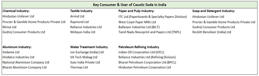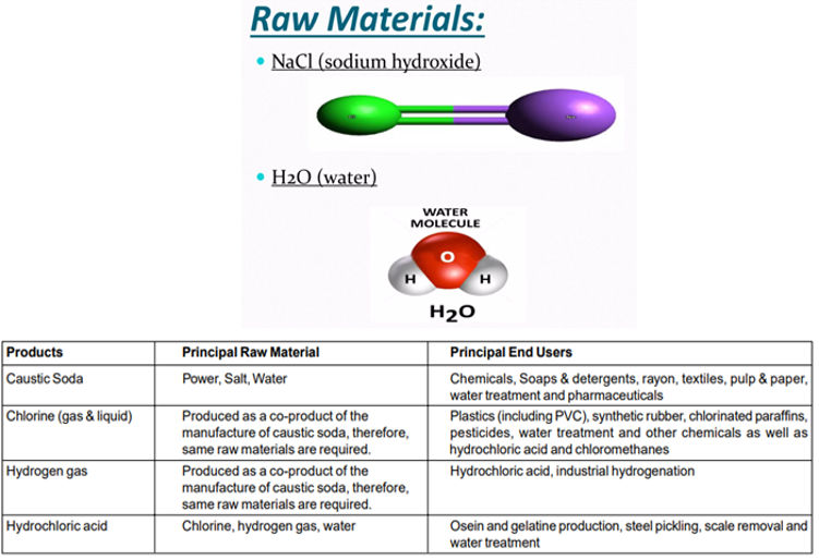 Key Raw Materials used to make Caustic Soda & its suppliers in India o Key raw materials are salt (sodium chloride), water & energy in the form of electricity o Key suppliers of raw materials in India include Tata Chemicals, Gujarat Alkalies and Chemicals and Nirma (8/n)