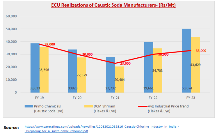 After a rough 1-2 years, some chemical and chemical-based stocks appear to be showing signs of turnaround Was looking at Caustic soda co. after the promoters announced preferential allotment It's a highly cyclical industry...ECU realizations peaked in Nov'22 and seem to have