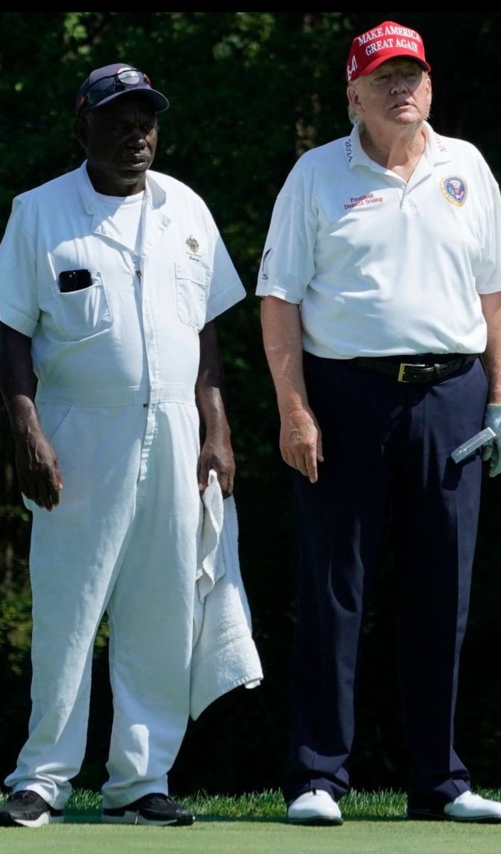 @dieworkwear This golf photo needs to be looked at closer. That is not Trump. Body double stand in. The weight and face on the golf Trump do not match the real Trump, he has lost weight.