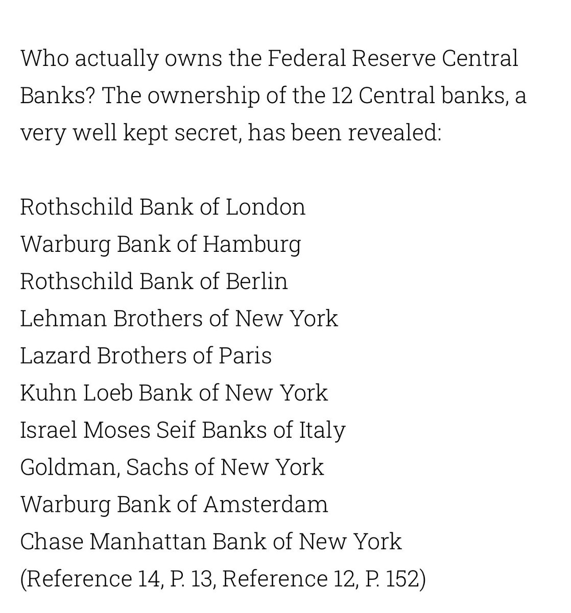 🚨✡️SOME FUN FACTS ABOUT THE FEDERAL RESERVE! ✡️Who knew they actually control the economy, crash it, heat it up when they want by raising or dropping the interest rate! What really causes inflation? ✡️Which banking families own the federal reserve? ✡️How did the government