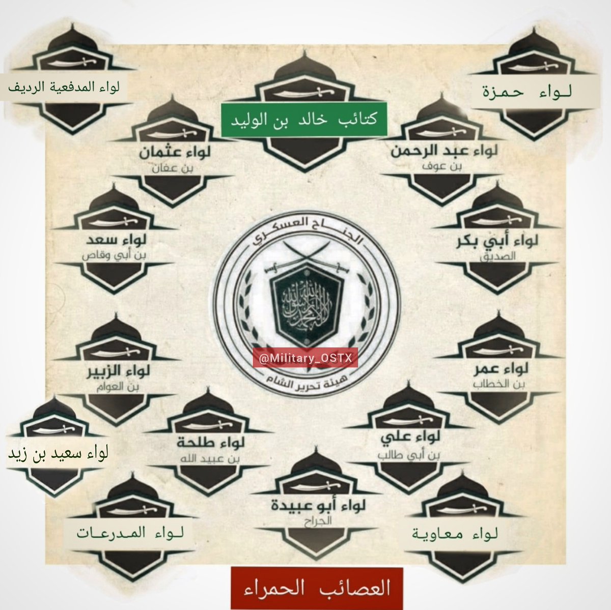 🔻 @ـيئـ.ـ ـة .. تـ<ـرير.. الشــ.ـام ( ـH.T.S ) تنقسم ألوية الهيئة إلى 14 لواء مقاتل , في كل لواء فوج للمدفعية والصواريخ و سرايا قنص و إسناد و مدرعات وقوات خاصة و حراري و ATGM بالإضافة إلى لوائين : مدرعات و مدفعية رديفة و كتائب خالد بن الوليد المستحدثة ( قوات خاصة ) وكتائب