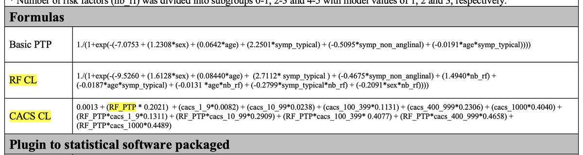 @DFCapodanno @DFCapodanno the supplementary material makes things clearer. two models. model 1 without the calcium score (max PTP 45%) Output of model 1 appears to be used as an input to model 2 along with the calcium score. model 2 results in a higher adjusted PTP. see formula.
