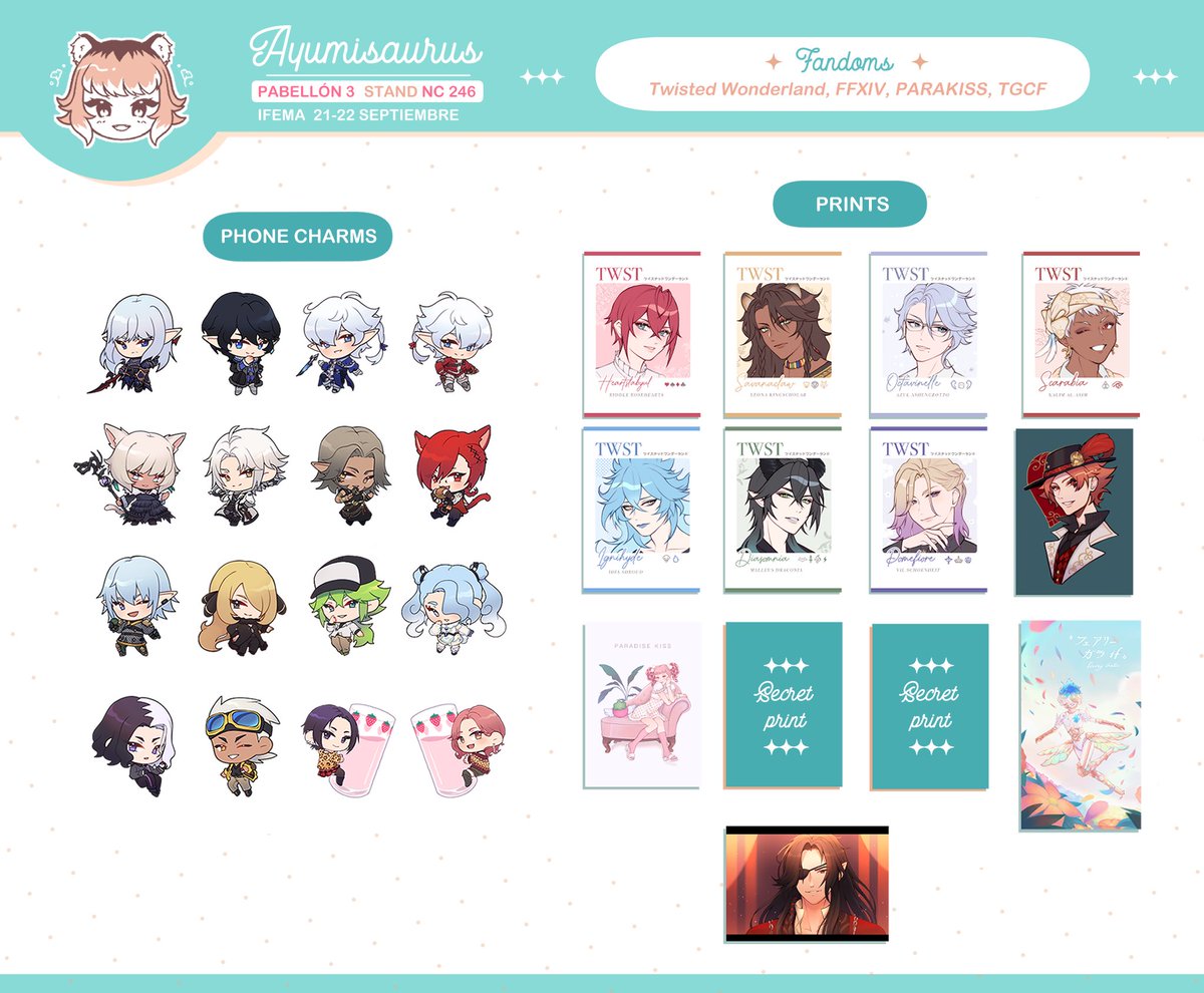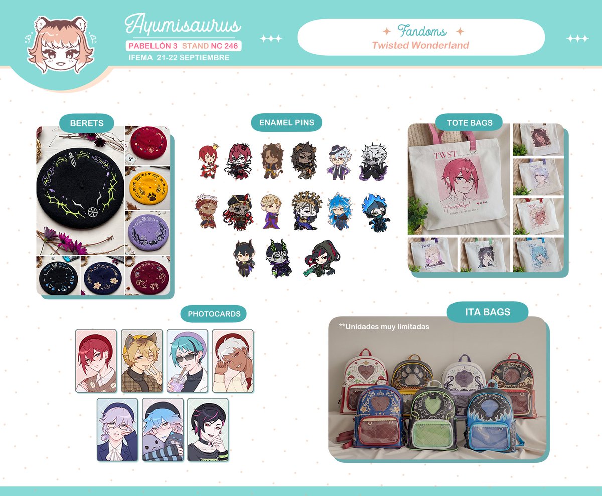@JW_Arte Holi!! Soy Ayu y estaré en el stand NC 246 - Pabellón 3! 🥺🙌✨ Como siempre llevaré muchas cosillas de Twisted Wonderland y de otros fandoms como Danmei, FFXIV, PKMN, Alien Stage y Honkai Star Rail! Acepto reservas así que si os interesa algo no dudéis en mandarme MD! 🫶🩷