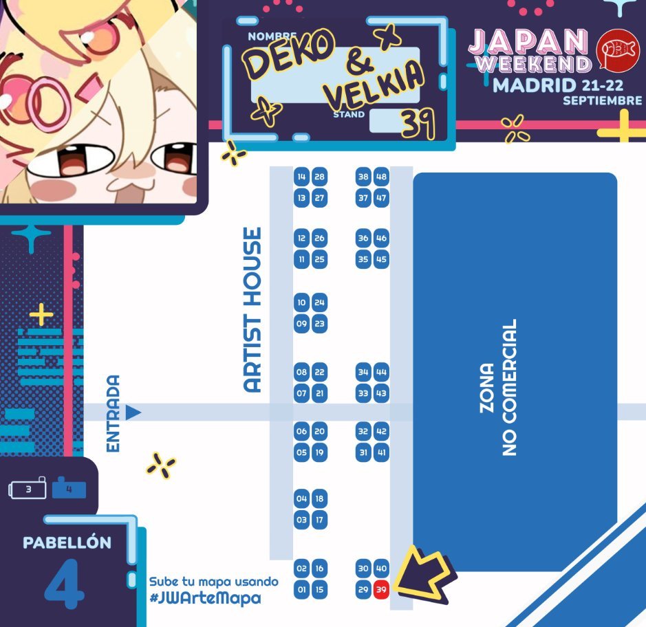 @JW_Arte ¡Hola! Soy Tomo, y voy a estar con @criser_mc en el pabellón 3, standAH91. Dejo por aquí ubicación y catálogo. Faltan algunas cosas descatalogadas y alguna sorpresita más, como los premios del stamp rally de Vocaloid que estamos organizando 👀 Nos vemos✨ #JWArte #JWArteMapa