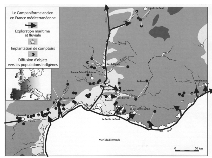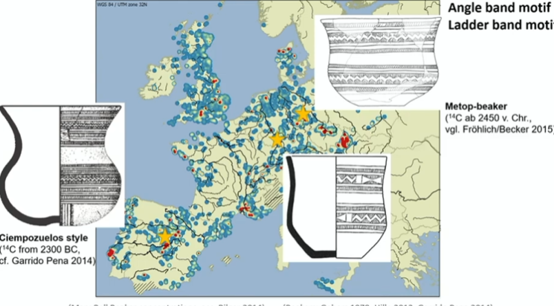 These Iberian made, Non-IE beakers are called the Maritime beaker, and they spread as the name suggests through maritime routes out of Iberia into France and Italy. The Maritime beaker reaches Southwest germany, inhabited by the Corded-ware Indo-europeans in 2600 BC,