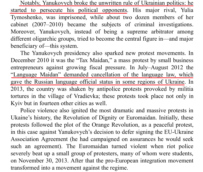 Sketch in this book somehow fails to mention the poisoning that ruined Yushenko's face. Yanukovych pres was the most thuggish in 🇺🇦's short & miserable history. Not in text, but Yan thought it a clever move to become an oligarch himself, by asset confiscation (it didn't work).