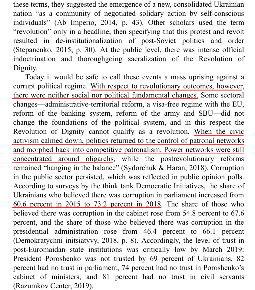 Chapters on the 🇺🇦 economy & energy sectors - definitely the most useful info this dry book contains (much of it is just handwringing Freedom House statistics). Notes Poroshenko & Zelensky admins used Donbass War & Crimean Crisis to impose harsh IMF austerity measures.