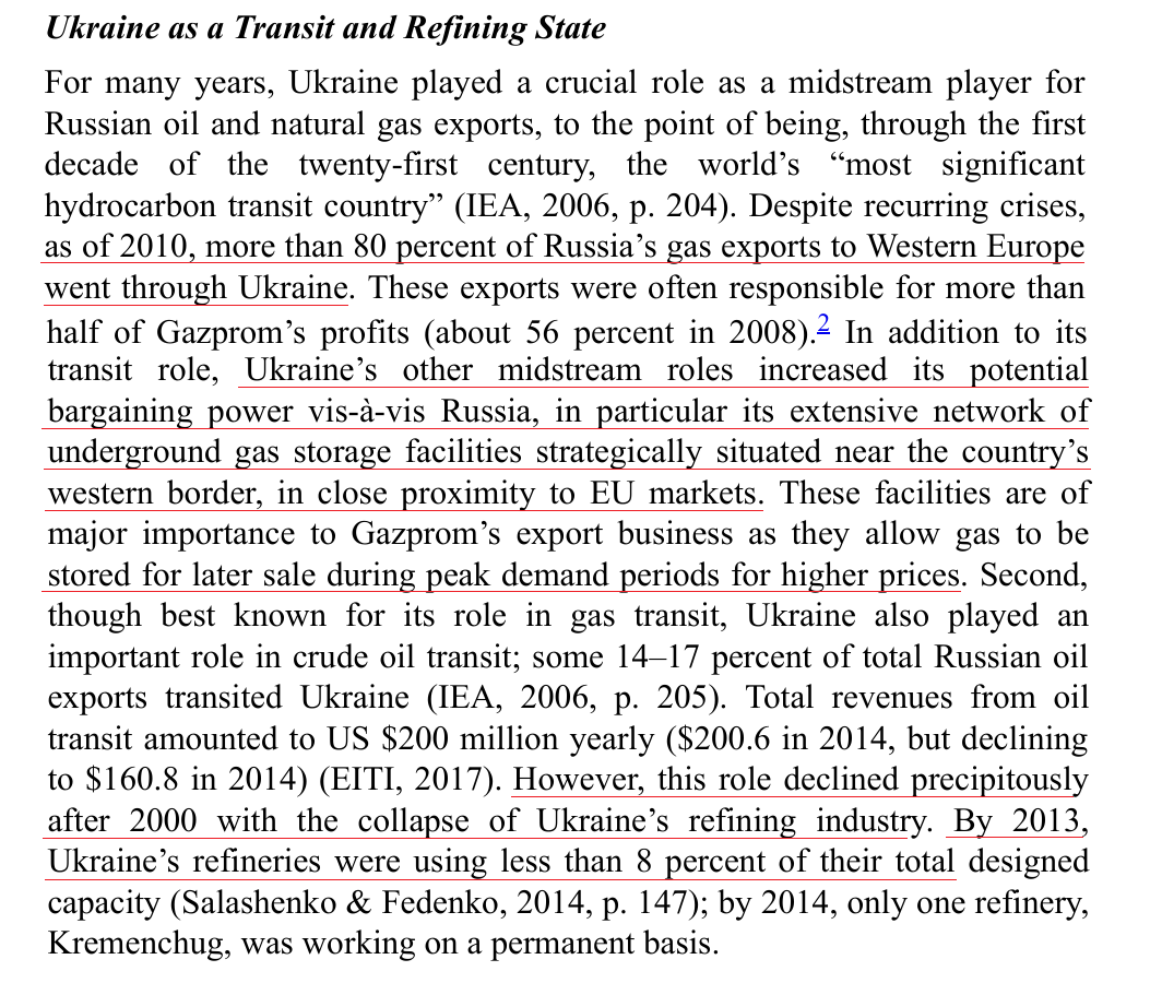 As late as 2010, 80% of Russian gas to Europe went through Ukraine. Post-2000 collapse of 🇺🇦's refining industry to less than 8% of capacity meant a massive ongoing loss of profits. Domestic prices for gas were lower in🇺🇦 than🇷🇺 - no politician could afford to kill subsidies.