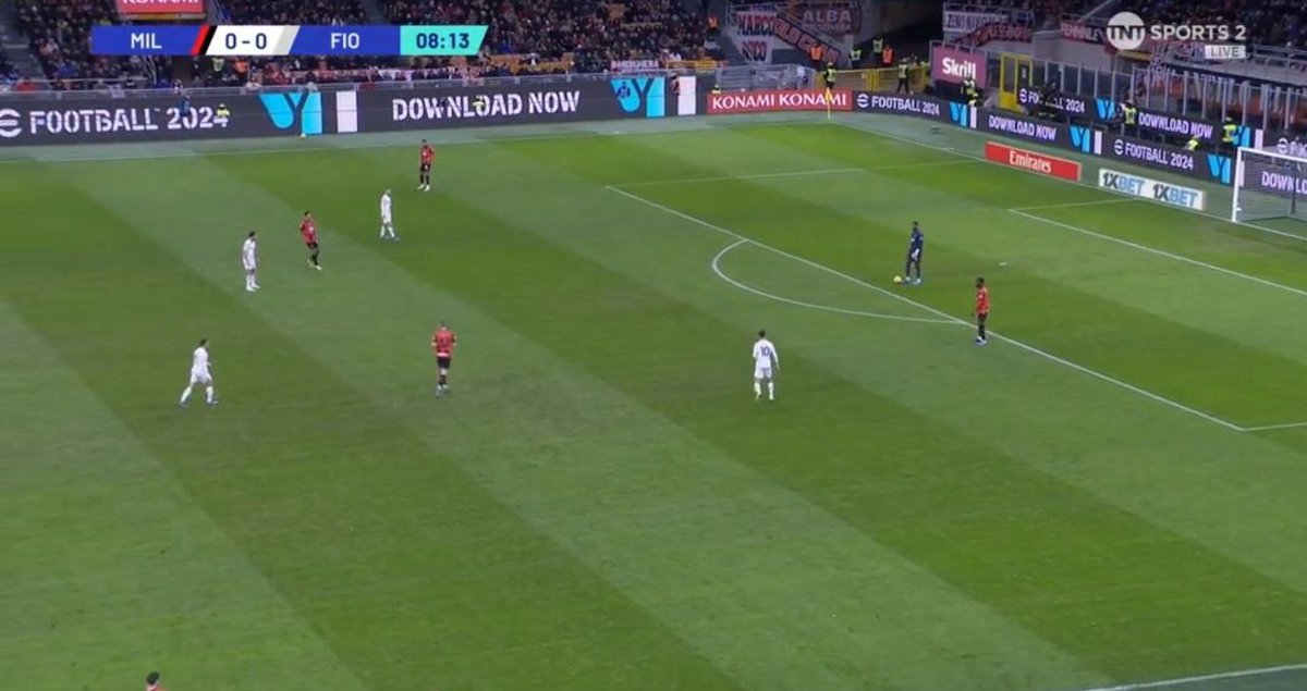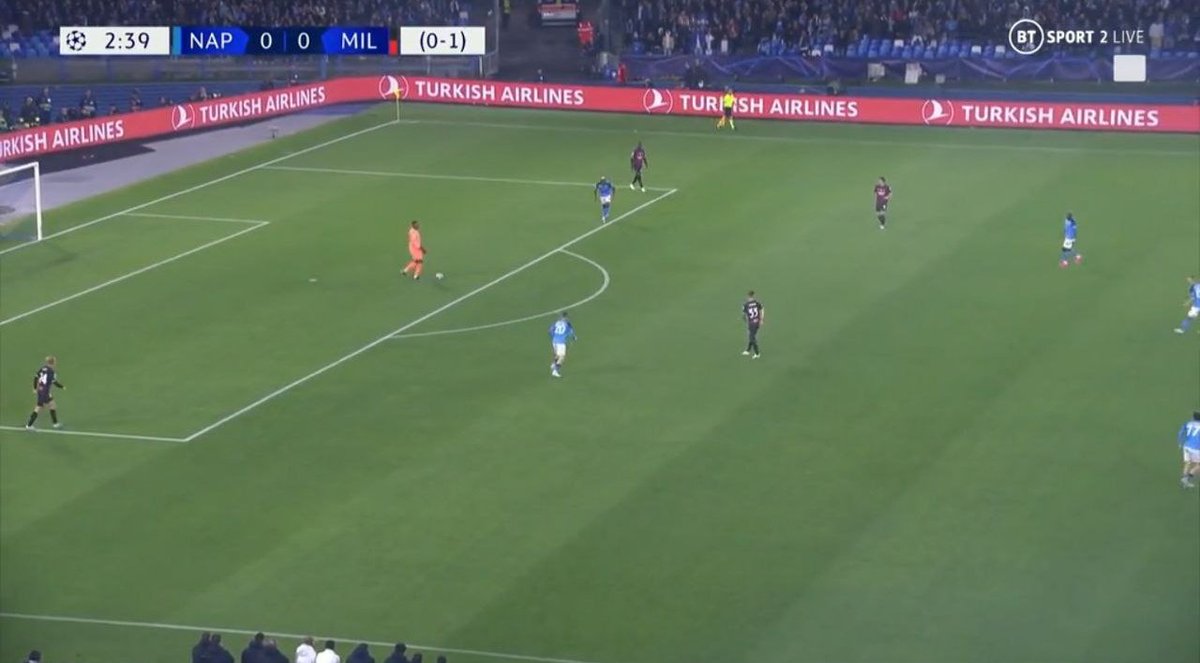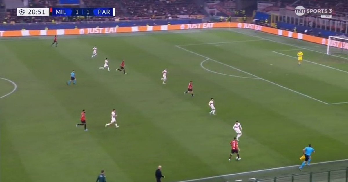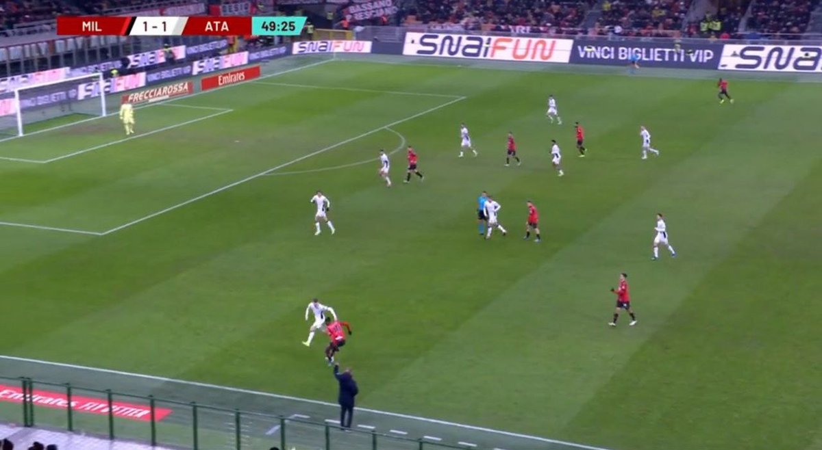 🛑 الضغط العالي ماهو أمر اساسي، احيان كثيرة الميلان كان يكتفي بالضغط المتوسط ويدع دفاع الخصم يتناقل الكرة باريحية في مناطقهم
