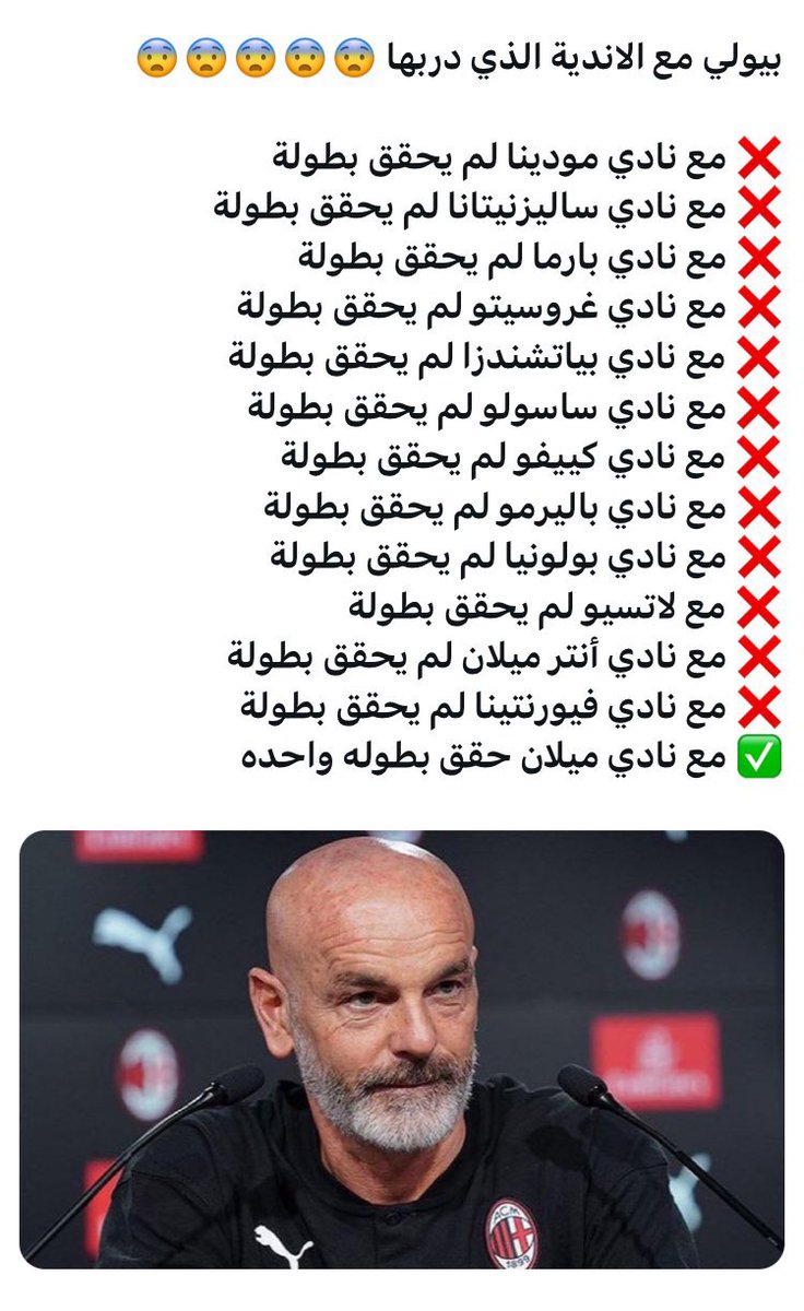 للتنويه : التحليل يستهدف تجربته مع ميلان وتحديدا اخر موسمين. تجربة بيولي مع نادي النصر ستكون التجربة رقم 14 في مسيرة المدرب الايطالي، يذكر أن النصر هو تجربته الخارجية الأولى بعد 13 نادي إيطالي.