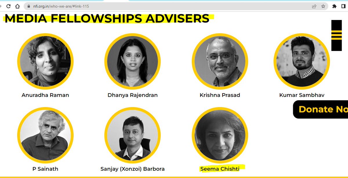 Pl feel free to read all names people associated with NFI Seema Chisti is wife of CPI(M) leader Late Sitaram Yechury Dhanya Rajendran is co-founder The News Minute P. Sainath is winner of Magsaysay Award and associated with The Wire and Hindu