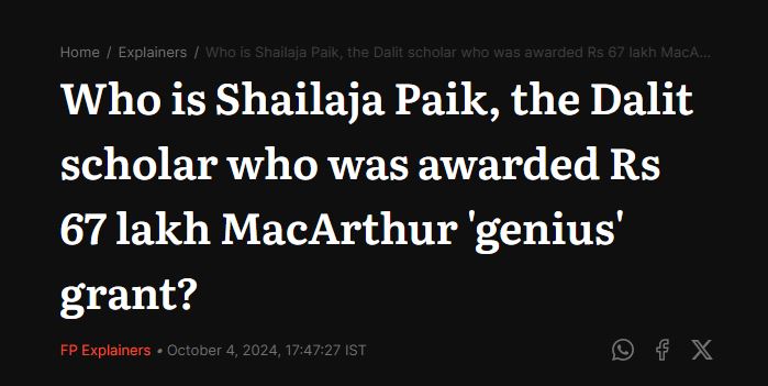 MacArthur Foundation (Thread) History professor at University of Cincinnati, Shailaja Paik has received a $800,000 (Rs 67 Lacs) grant from MacArthur Foundation for Dalit Studies Why USA is so interested in Indian Dalits ? Lets Expose 1/19