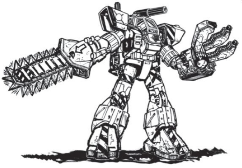 Machine guns, missile racks, autocannons, even lasers where the power plant allowed it. Renegades and lawful governments alike all turned these plowshares into swords. Often, the tools of the machine's trade were retained and used as an improvised melee weapon. 4/