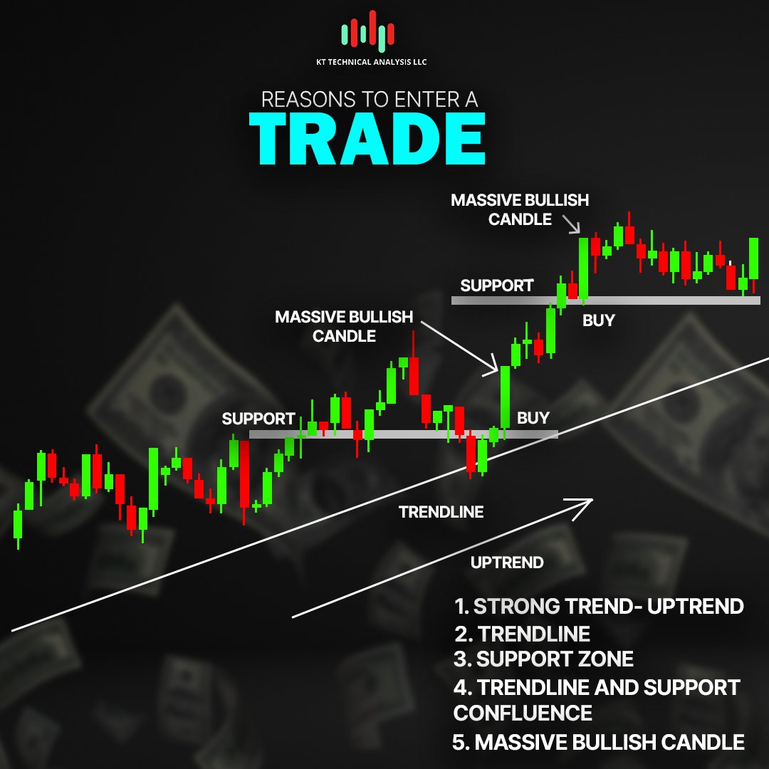 Trading 101: Reasons to Enter a Trade This chart outlines the key factors to consider when deciding to enter a trade: ✔️a strong uptrend ✔️a supportive trendline ✔️a supportive zone ✔️a confluence of these factors A massive bullish candle can confirm the strength of the