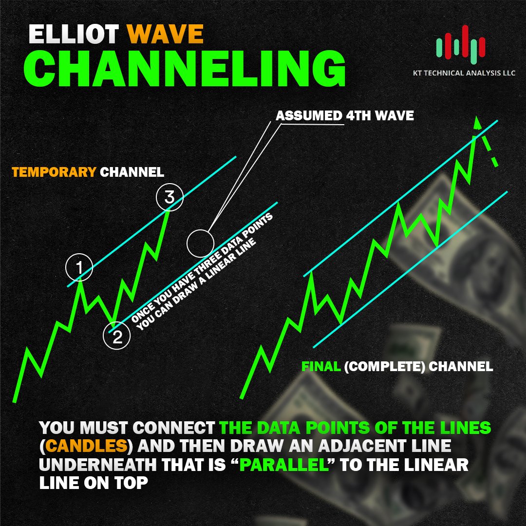 Trading 101: Elliot Wave Channeling The illustrates the process of drawing Elliott Wave channels, a valuable tool for identifying potential support and resistance levels. By connecting the data points of the lines (candles), you can create a temporary channel. Once you have