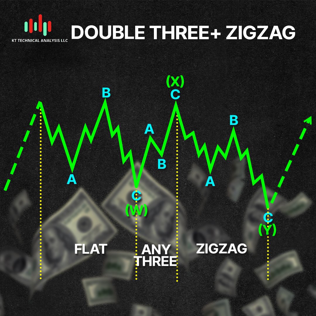 Trading 101: Elliot Wave Combinations The Elliott Wave Combination Patterns, like Double Three + Triangle and Double Three + Zigzag, represent complex corrective structures used to understand market corrections. Double Three + Triangle: This pattern combines a Flat correction