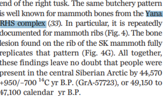 The specific type of Mammoth hunting and Ivory decoration the Yana used is also found in other nearby sites dated to the Same period (Or even earlier, to 36.600bp!)