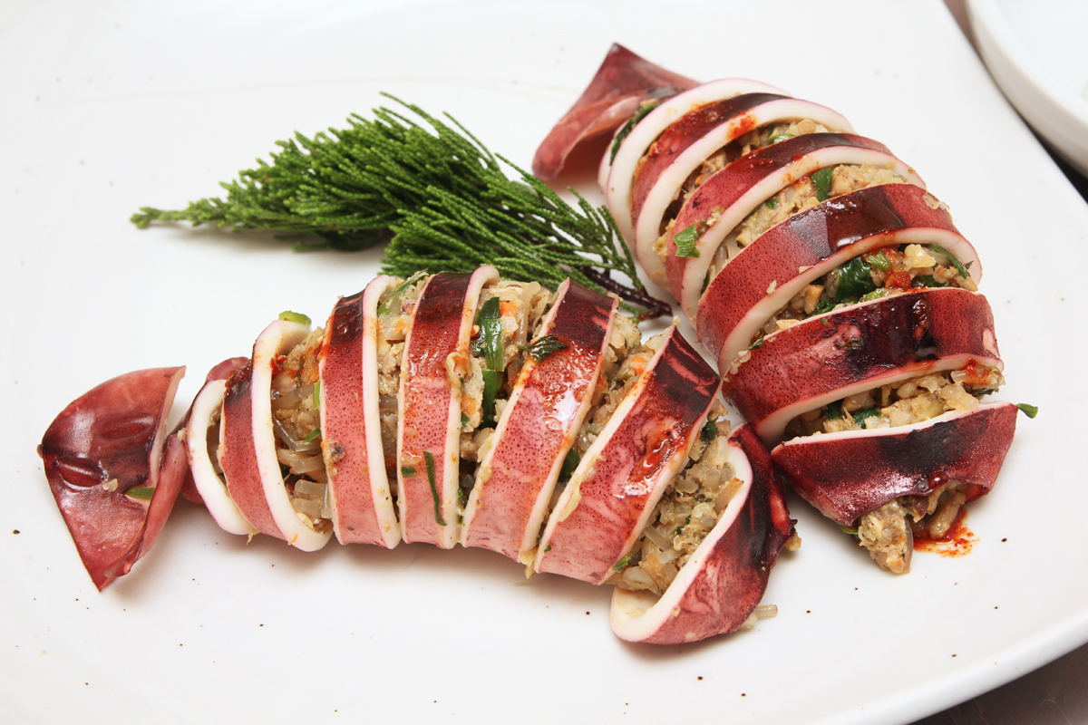 「ご当地マメ知識」のコーナーでは江陵の話をしました。 저는 강릉을 좋아해요. 정동진하고 바다가 보이는 미술관 그리고 강릉중앙시장 등을 추천해요. 특히 강릉중앙시장에서 파는 오징어순대는 별미예요. 「오징어순대」はこんな料理です。輪切りにしたものに溶き卵を絡めて焼いたりもします。