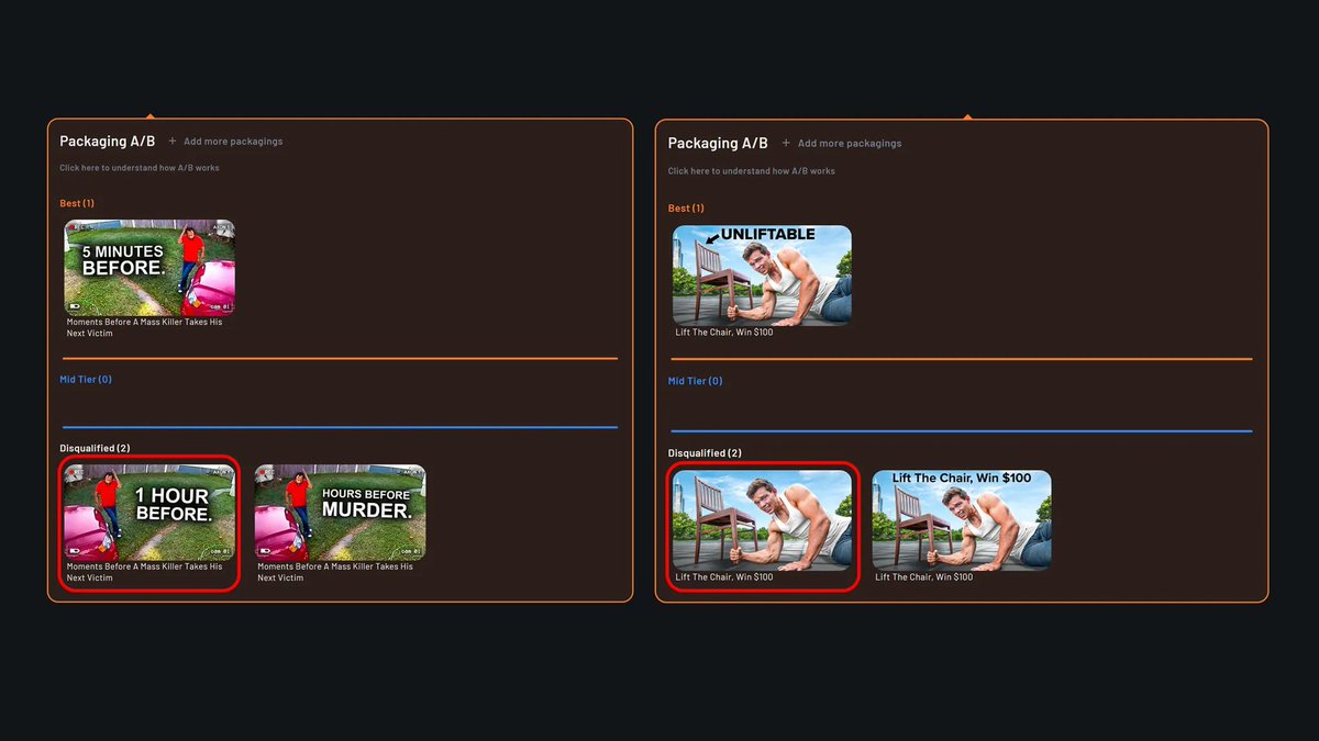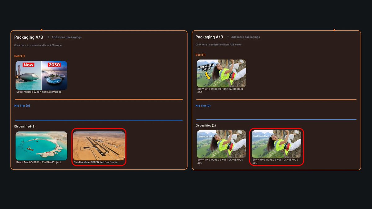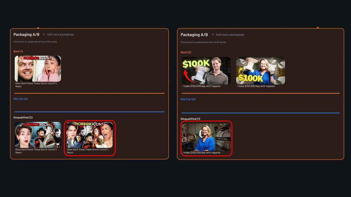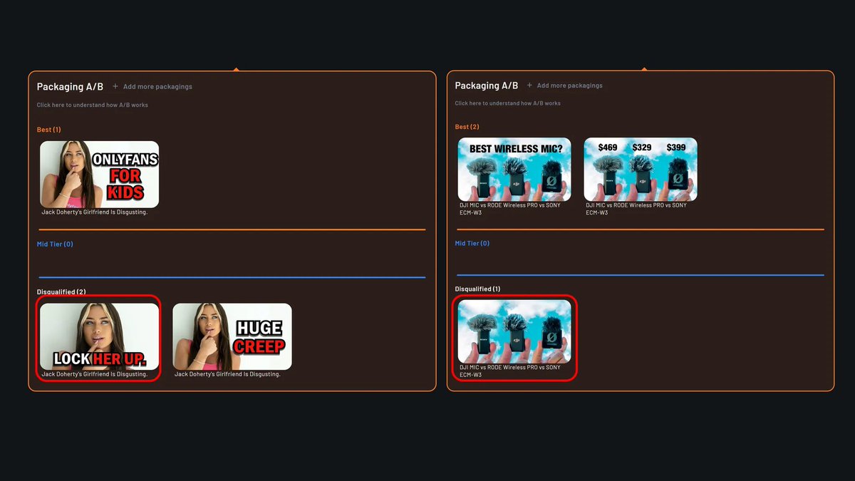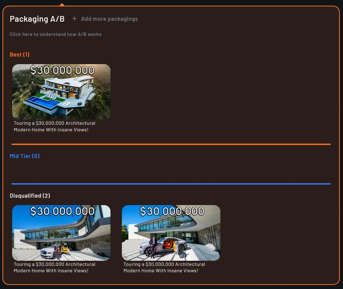 Here are a few more examples from our data that speak for themselves, I let you judge for yourself. 𝘕𝘰𝘵𝘦: 𝘛𝘩𝘦 𝘱𝘢𝘤𝘬𝘢𝘨𝘪𝘯𝘨 𝘩𝘪𝘨𝘩𝘭𝘪𝘨𝘩𝘵𝘦𝘥 𝘪𝘯 𝘳𝘦𝘥 𝘪𝘴 𝘸𝘩𝘢𝘵 𝘳𝘦𝘮𝘢𝘪𝘯𝘦𝘥 𝘰𝘯 𝘠𝘰𝘶𝘛𝘶𝘣𝘦 𝘢𝘧𝘵𝘦𝘳 𝘵𝘩𝘦 𝘈/𝘉 𝘵𝘦𝘴𝘵. 𝘐 𝘥𝘰𝘯’𝘵 𝘬𝘯𝘰𝘸