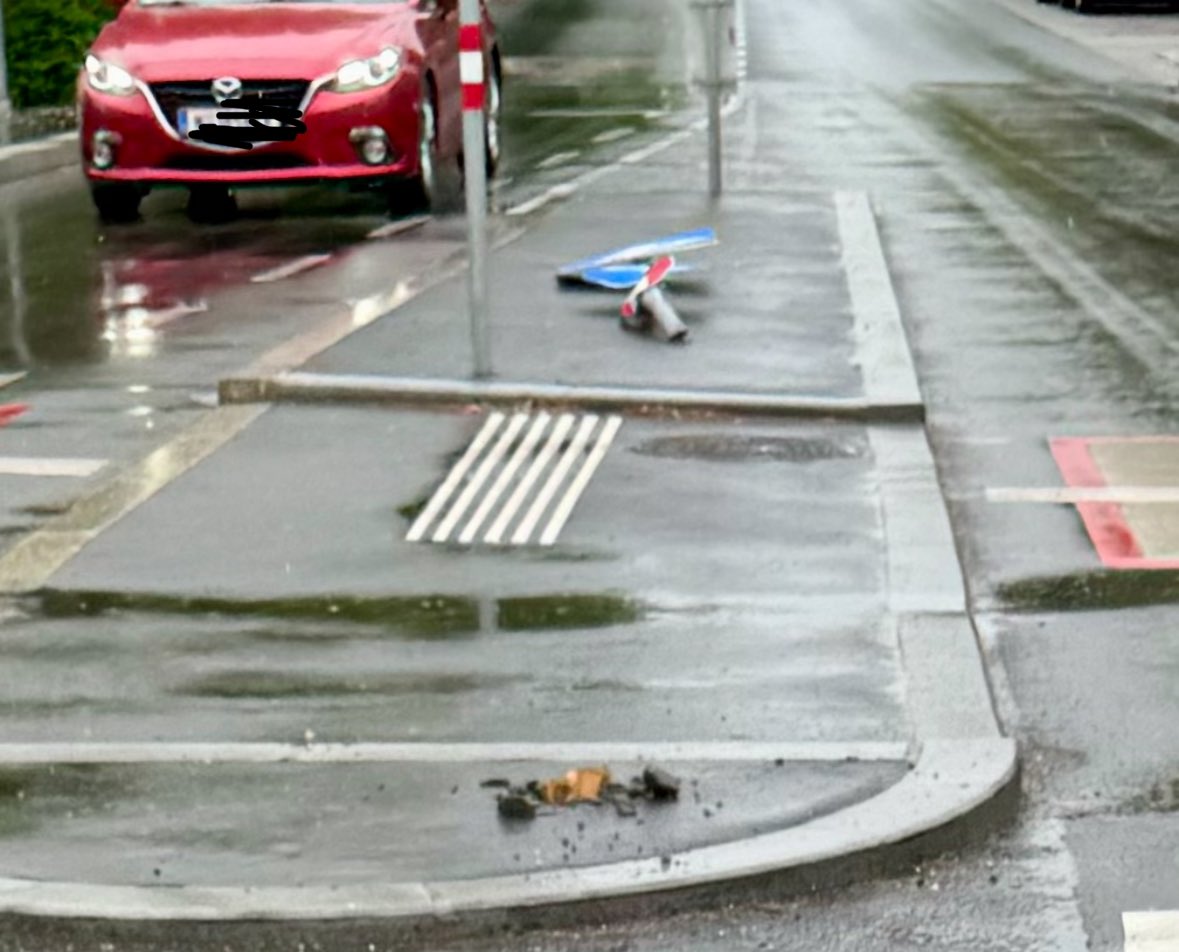 In meiner Nachbarschaft wurde vor rund acht Wochen eine Verkehrsinsel umgestaltet und im Zuge dessen auch ein neues Schild aufgestellt wo vorher keines war. Soeben hat es zum fünften mal jemand umgefahren.