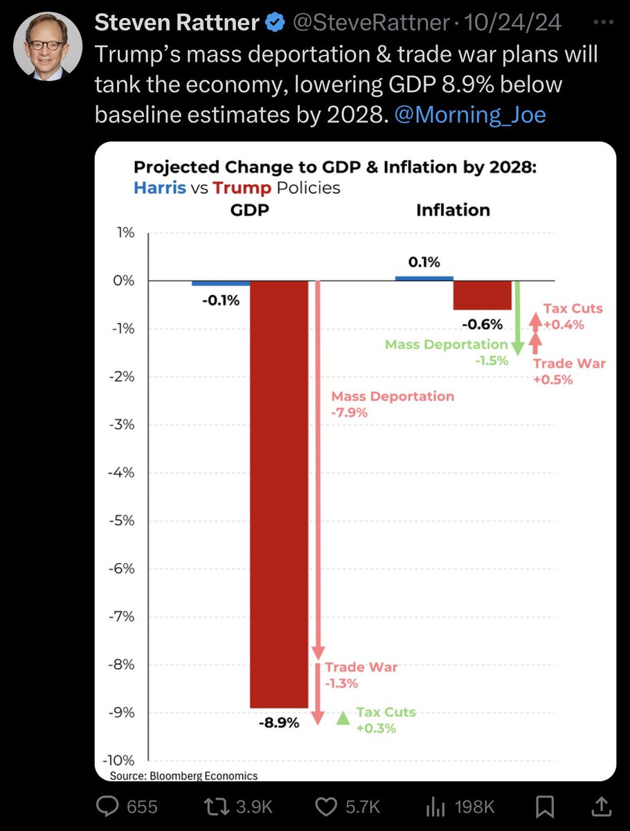 @realDonaldTrump Nah man. There’s a reason hundreds of economists have endorsed Harris. Your economic plans and mass deportations would absolutely destroy the economy and undo all the progress we’ve made.