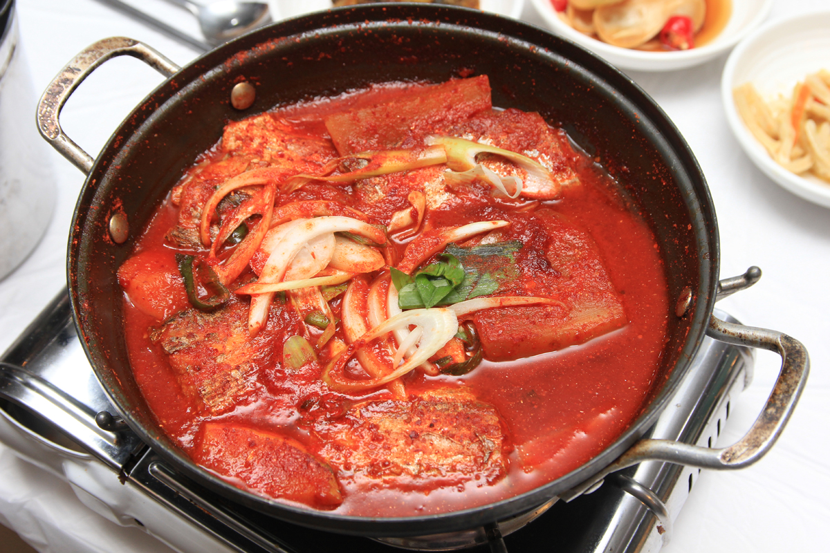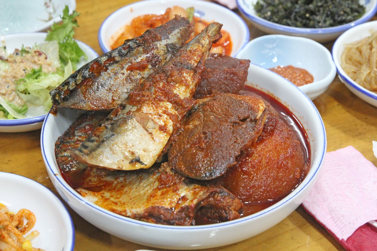 同じ魚の煮付けでも、味付けが変わると違った印象に。韓国では鍋料理のように煮ながら食べることが多いのも違いと言えるでしょうね。写真は「고등어조림(サバの煮付け)」「갈치조림(タチウオの煮付け)」「객주리조림(ウマヅラハギの煮付け)」「병어조림(マナガツオの煮付け)」です。