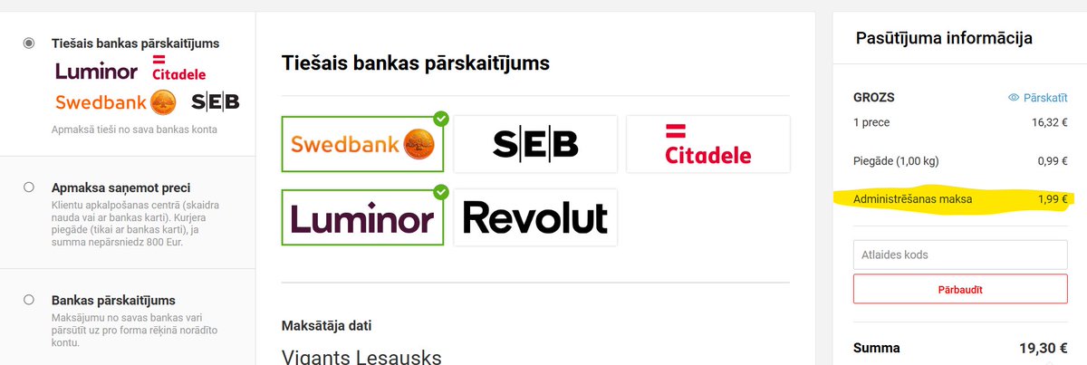 @vigants Arī pamanīju. Man jau liekas, ka pie preces cenas jau vajadzētu būt mistiskajām “administrēšanas maksām”. Kā tur īsti ir @PTACgovLV ? Nav negodīga prakse?