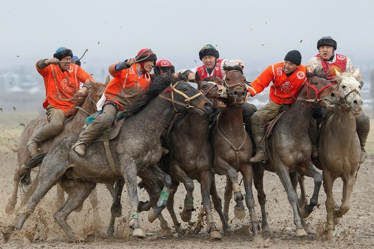 Players so passionately throw the carcass into the tai kazan that they themselves fall off the horse and dive head-first into it. In modern times, the carcass has been replaced with a gutted sheep The killing of a sheep is akin to a sacred sign of respect in Kyrgyz culture.