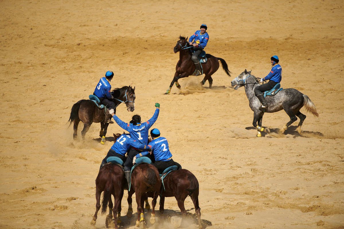 The heavens opened and the god Tengri descended to bless Alma with glories beyond the reward of any mortal man. He represents an exemplary caliber of warrior known only to the steppe. Alma next faces Kyrgyzstan in the grand finals of Kok Par, the Kazakh variant of the game.
