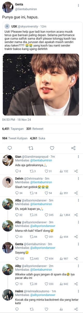 @ayrescha Mari kita awali pagi ini dengan membaca Genby dari awal🧘🏻 KENAPA pake keskip banyak part sih 😭 kepencet tanpa sengaja ini keknya😭😭 jadi lupa kan jalan ceritanya gara² tenggelam dalem nih au😭