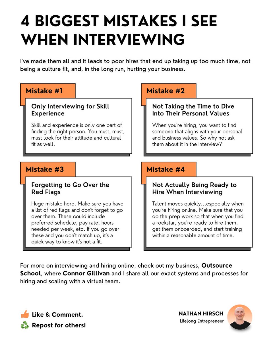 What's your take? ♻️ REPOST if you learned something new. P.S. Did you grab my free hiring mistakes ebook? http://outsourceschool.com/mis...