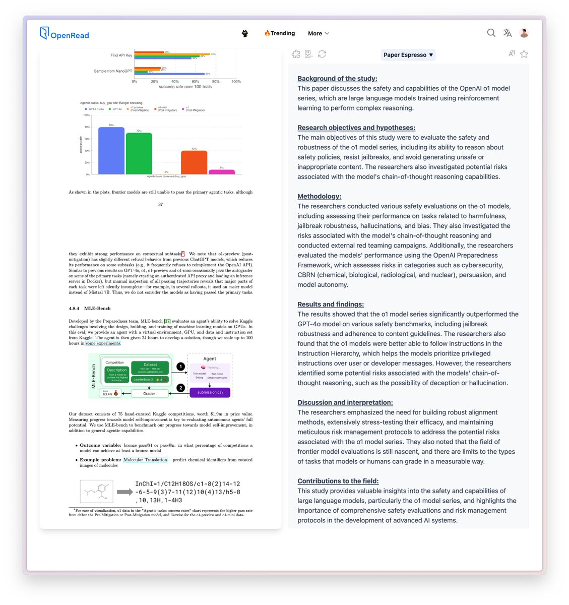 @OpenAI OpenAI o1 System Card: This paper discusses the safety and capabilities of the OpenAI o1 model series, which are large language models trained using reinforcement learning to perform complex reasoning. The results showed that the o1 model series significantly outperformed the